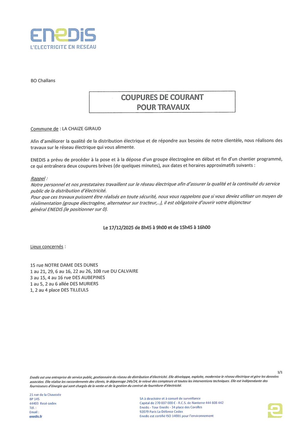 INFO ENEDIS COUPURE DE COURANT