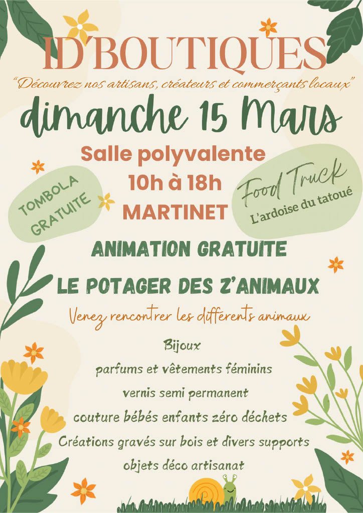 A la salle polyvalente de MARTINET, venez rencontrer les artisans, les créateurs et les commerçants locaux
