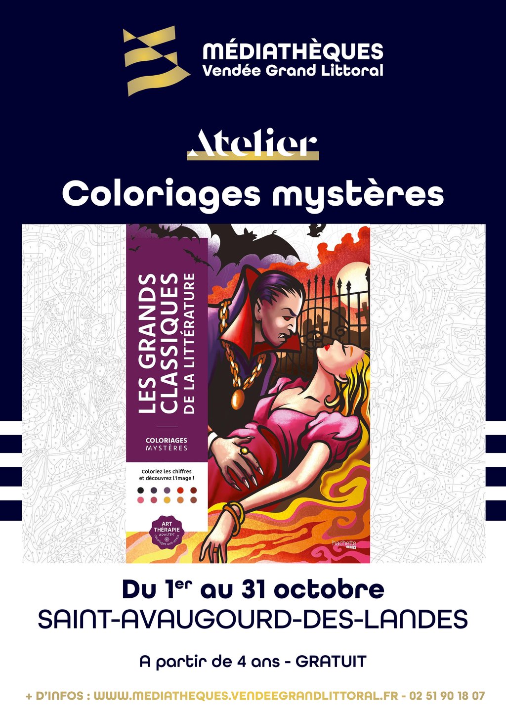 Le réseau des médiathèques de Vendée Grand Littoral organise un atelier "coloriages mystères" à la médiathèque de Saint Avaugourd sur le thème des livres cultes.