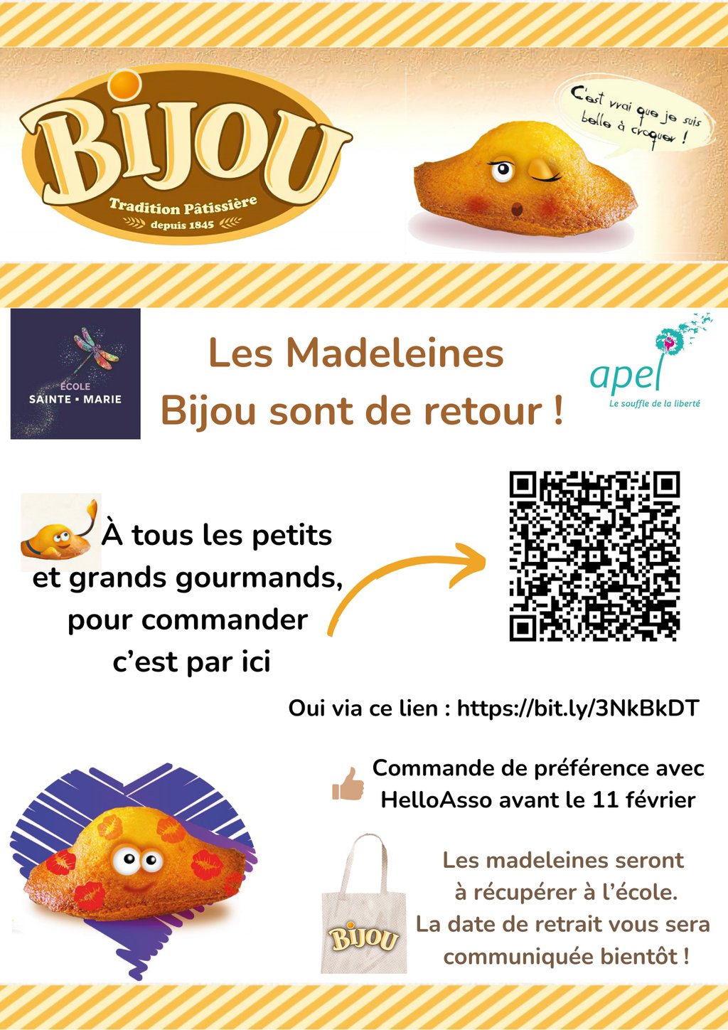 À tous les petits et grands gourmands, vente de madeleines Bijou !